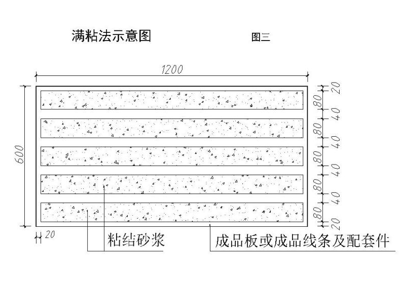 1.2.2成品板及成品配套件與基層墻體的粘結(jié)方法和粘貼面積的要求。
